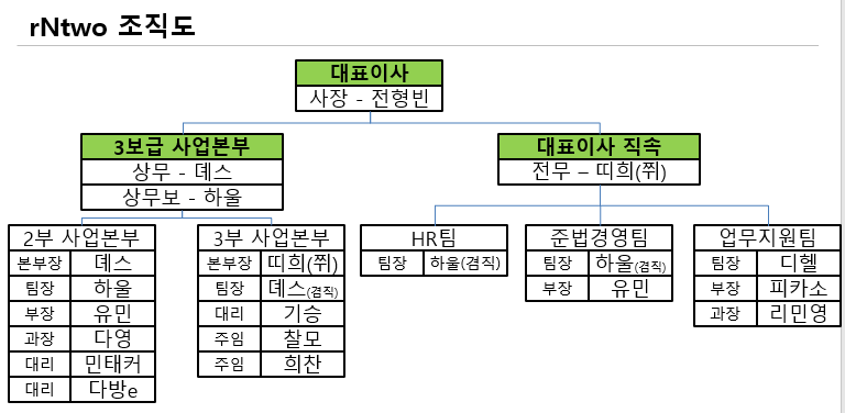 rNtwo 주식회사 임직원 조직도 공유드립니다.