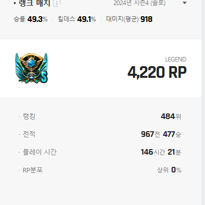 시즌시작하고 1000판씩박고 이번시즌은 200판밖에안박았으니 킬뎃이 안내려가지 븅신아