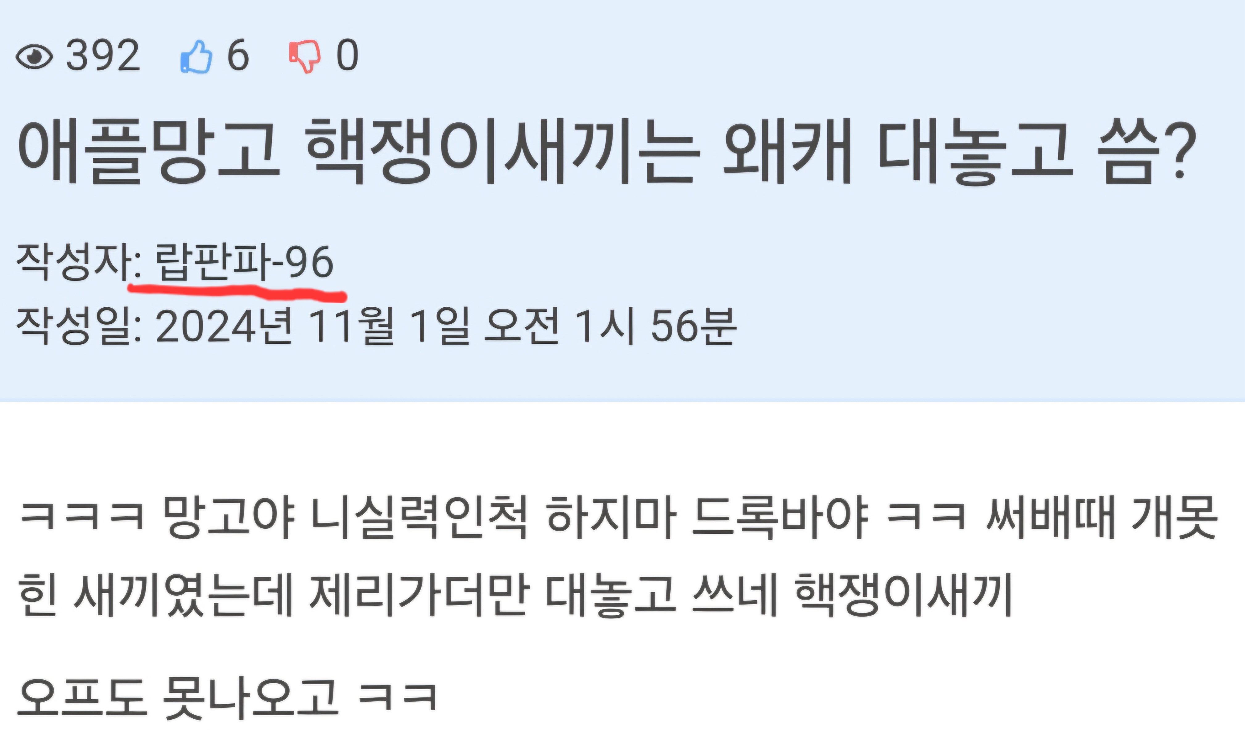 랍판파-96 그냥 병신이네 ㅋㅋ상종못할새끼