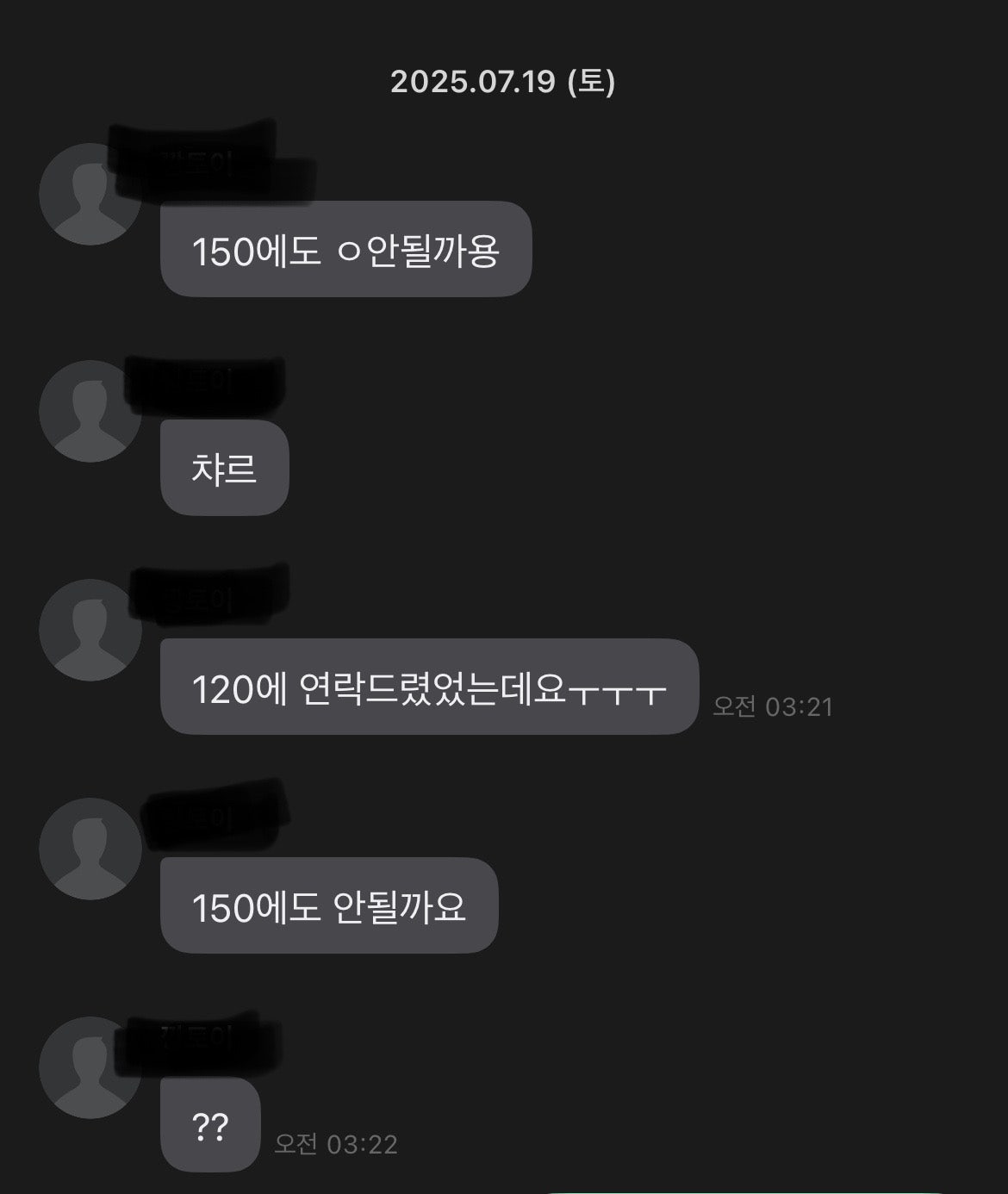 150장만 3명 연락 왔습니다 십만원만 더 받습니다.