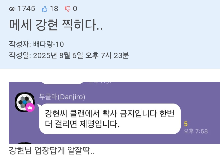 메세가 뭐 명문클이네 폐 끼친다고하게?