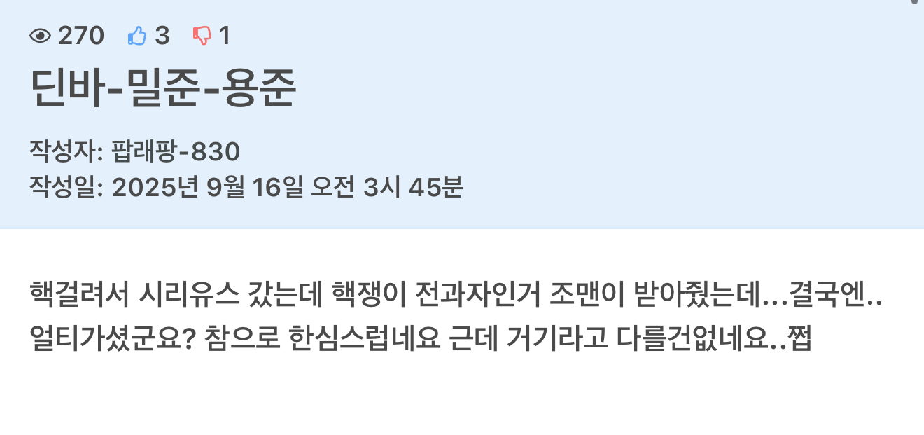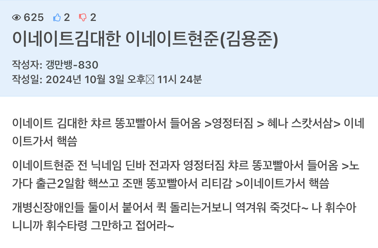 최근에 글올라오셔서알아봤는데요 조맨님한테 몇번뒷통수 치시는거에요?? 그걸믿어주는조맨님은병신이세요??얼티메이트는형빈님 똥꼬빨아서 간건가요??