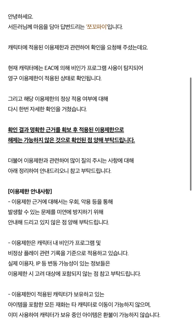 니도 저 답변 왔는데 계속 문의 때리니까 저렇게 답변 준거겠지 등신아