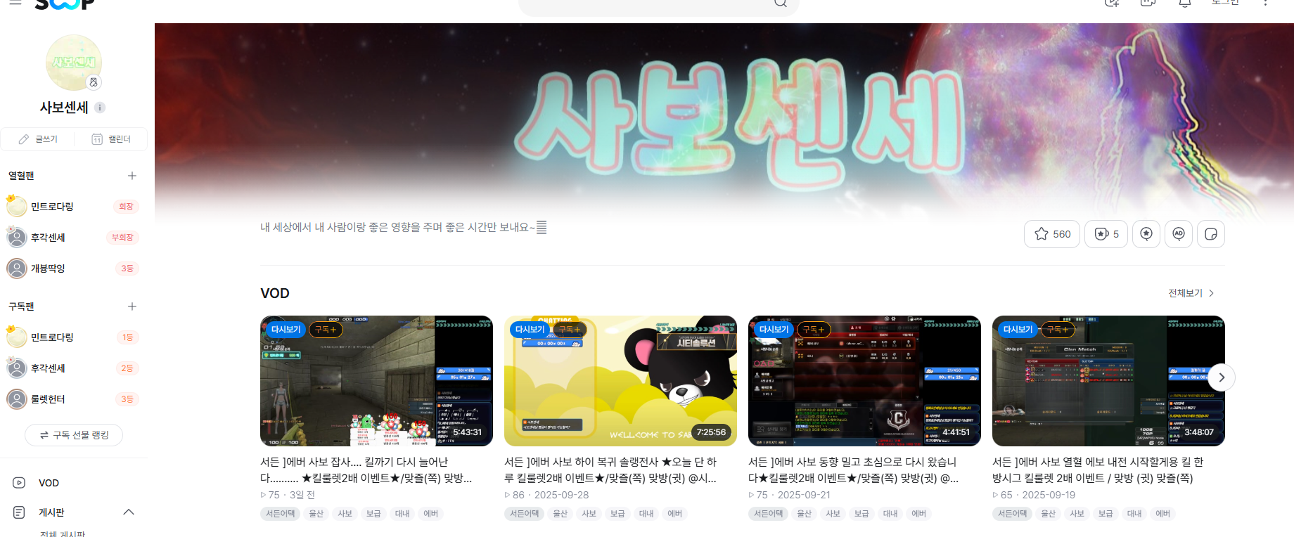 방송국주소 https://www.sooplive.co.kr/station/ndlswns78940
