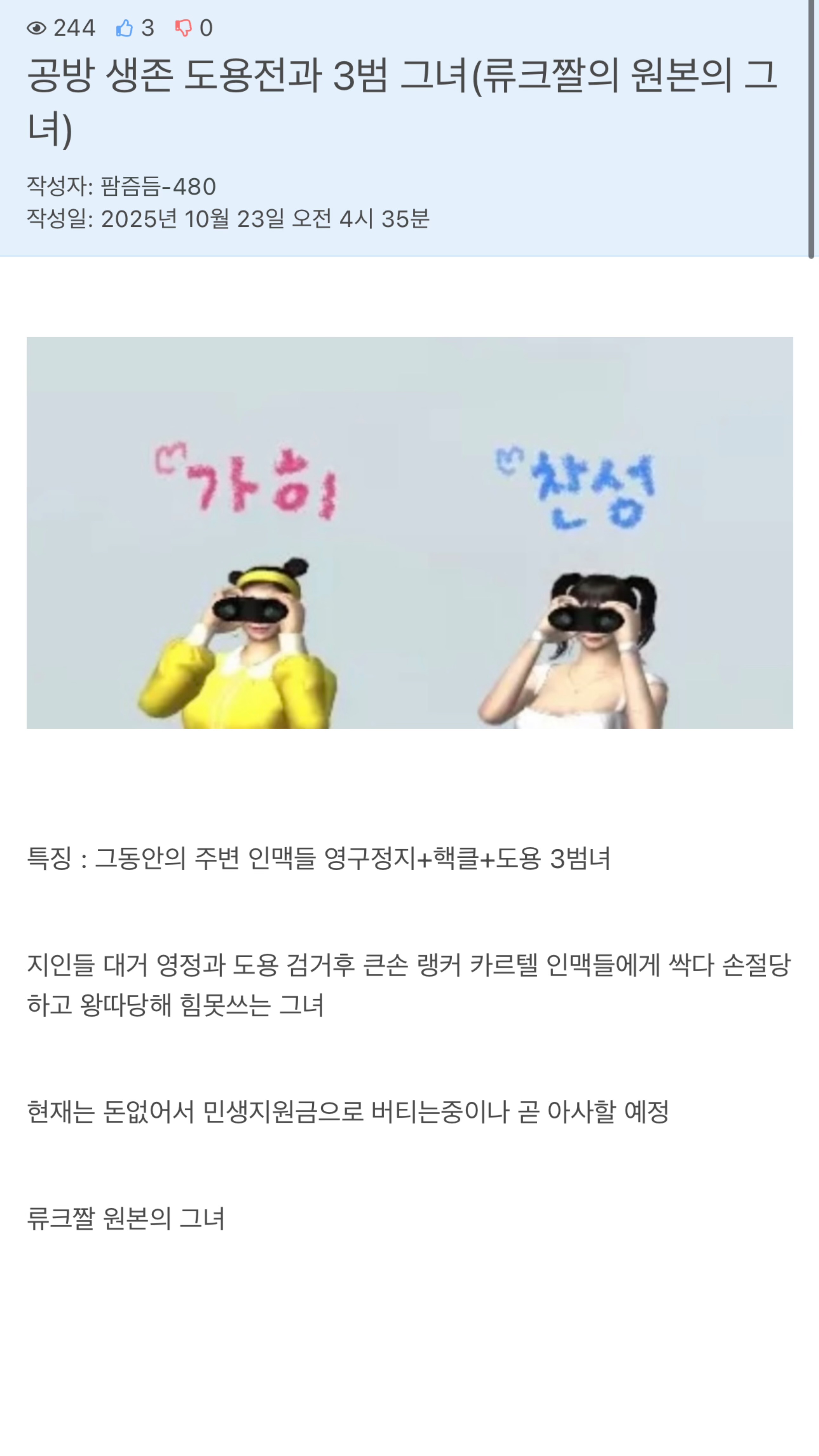 벌레년이 공방에서나 대가리 세우지 어디서 대가리 세워보겠음ㅋㅋ존나 하찮다