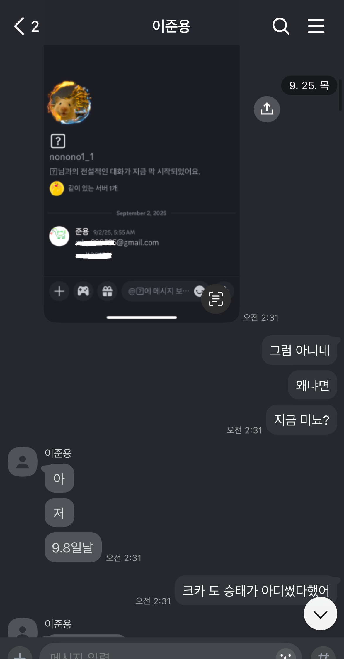 그러다 지인의 지인이였던 승태 라는 분에게 9월2일에 부캐를 빌려줬습니다.