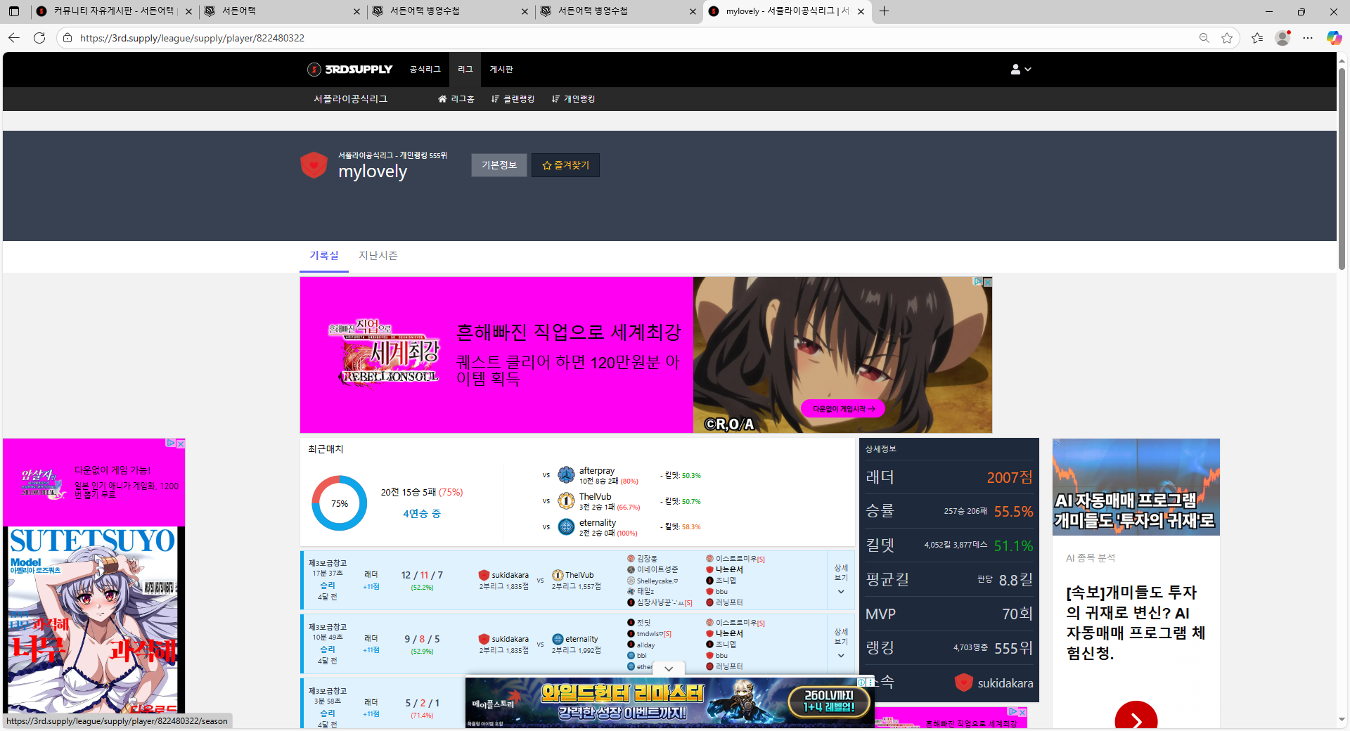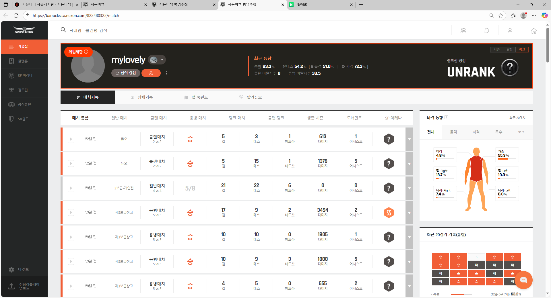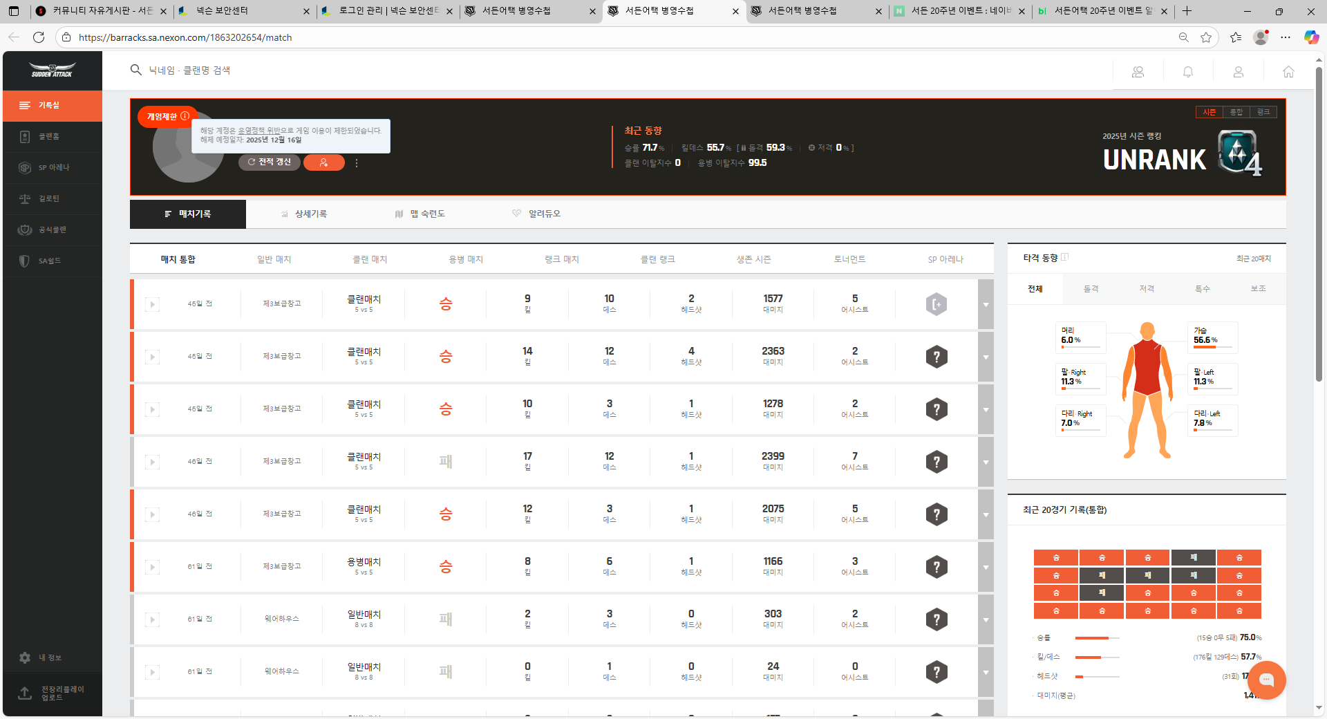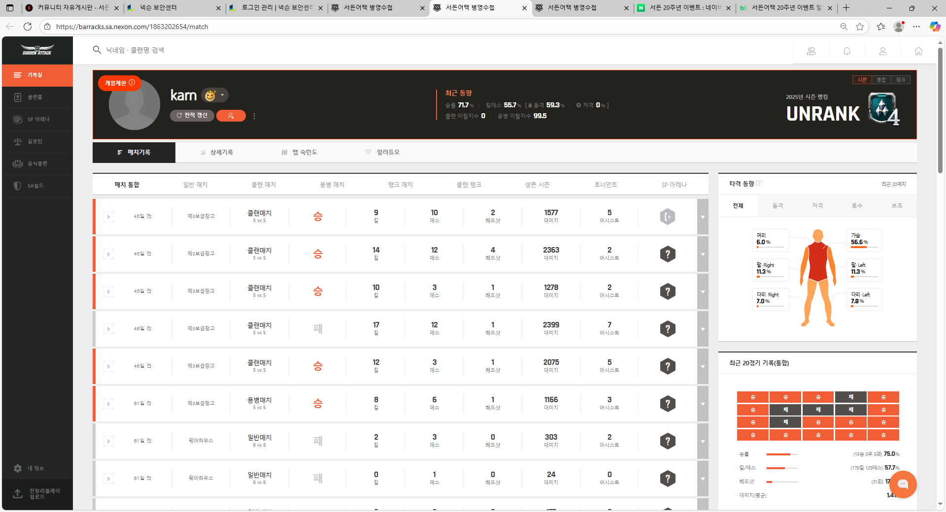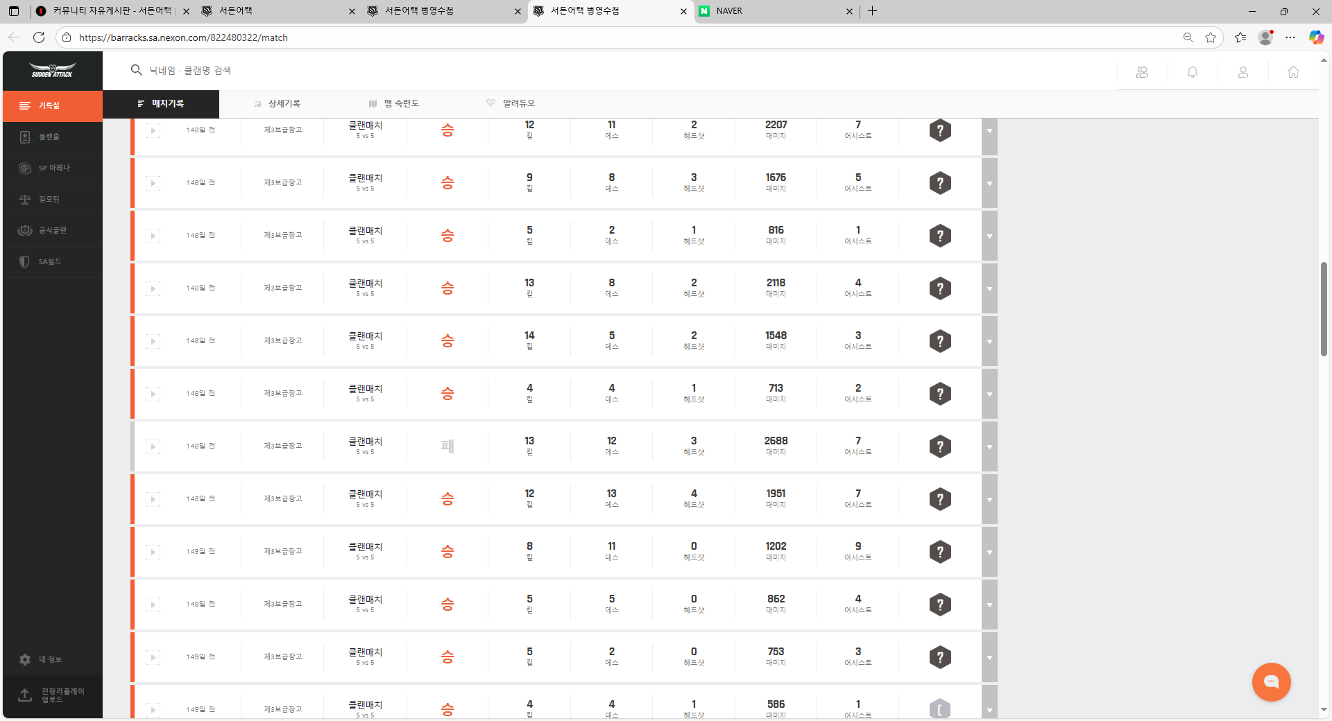지금 사용하는 본캐 지수얀 병영: https://barracks.sa.nexon.com/1594644059/match