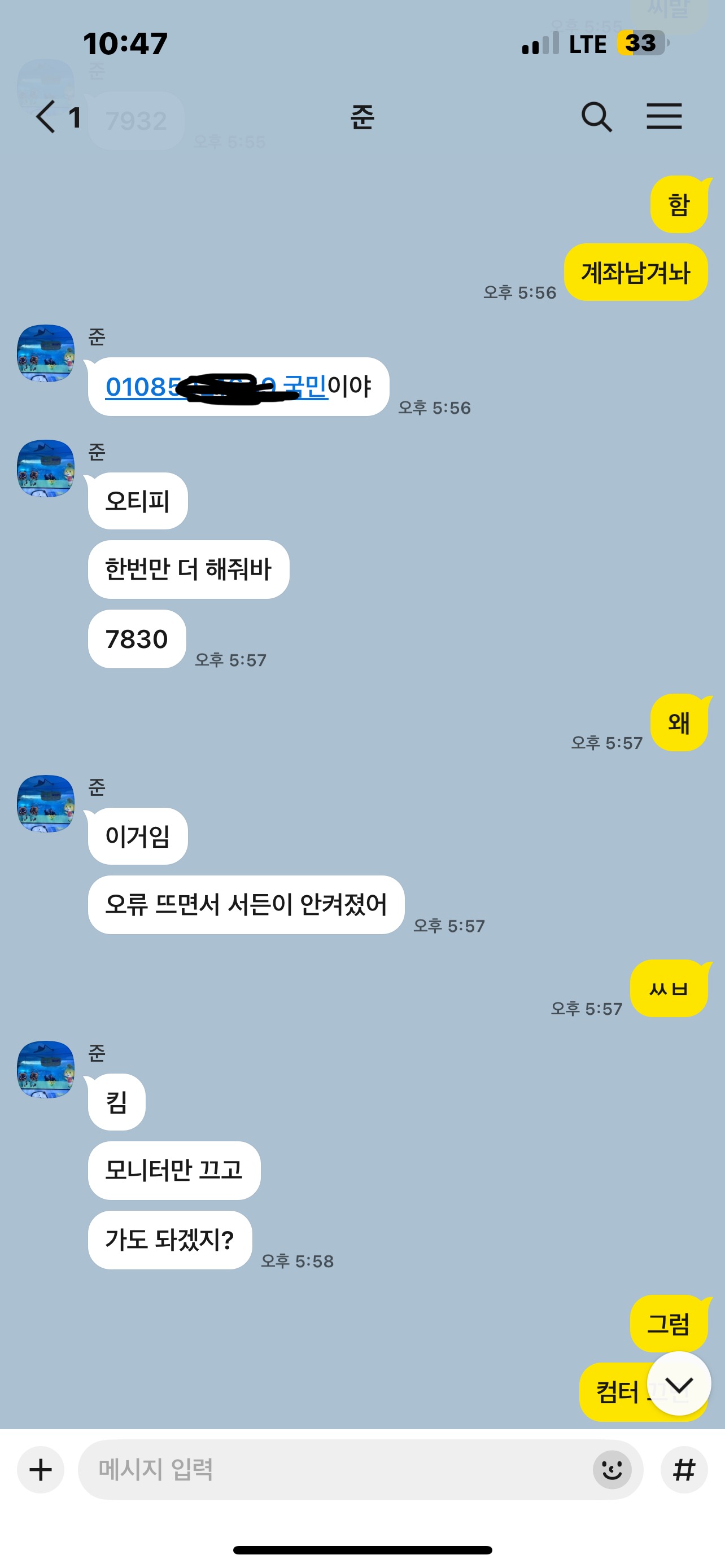 켈프와의 대화내용 및 피시방비 입금내역 입니다.