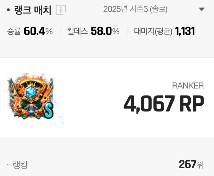 솔랭에서는 58퍼 잘 나오시네요