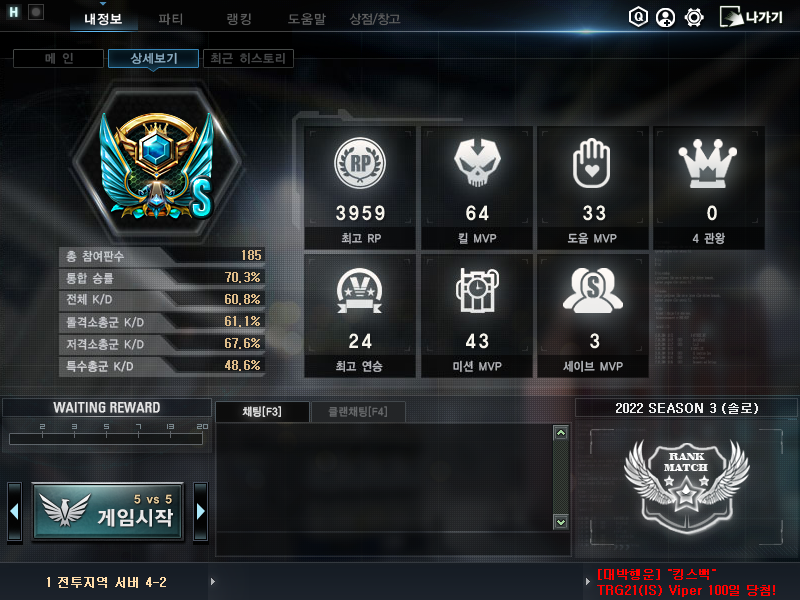 이게 순겜으로 가능한 킬뎃이랑 승률인가요?