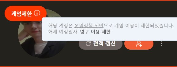 영정터지면 계정삭제 해버리고 어뷰정지라 좆지랄 떠는게 핵쟁이들 영정터지면 하는 레파토리임 역대 모든 영정먹은 핵쟁이들도 다 똑같이 계삭후 어뷰정지라고 떠벌리고다님