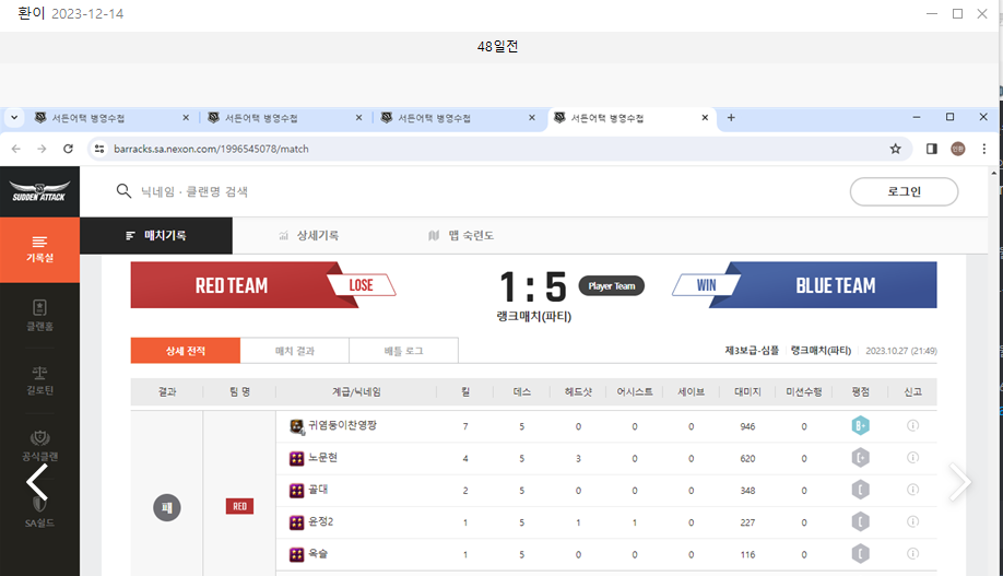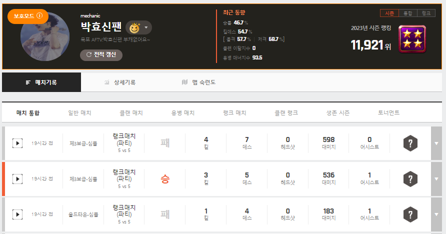 노문현이랑 윤정2랑 지난시즌에 파랭했던건 인정하지만 유서클랜분들이랑은 파랭 한적 없거나 한두판 팀으로 만난게 끝일거구요.