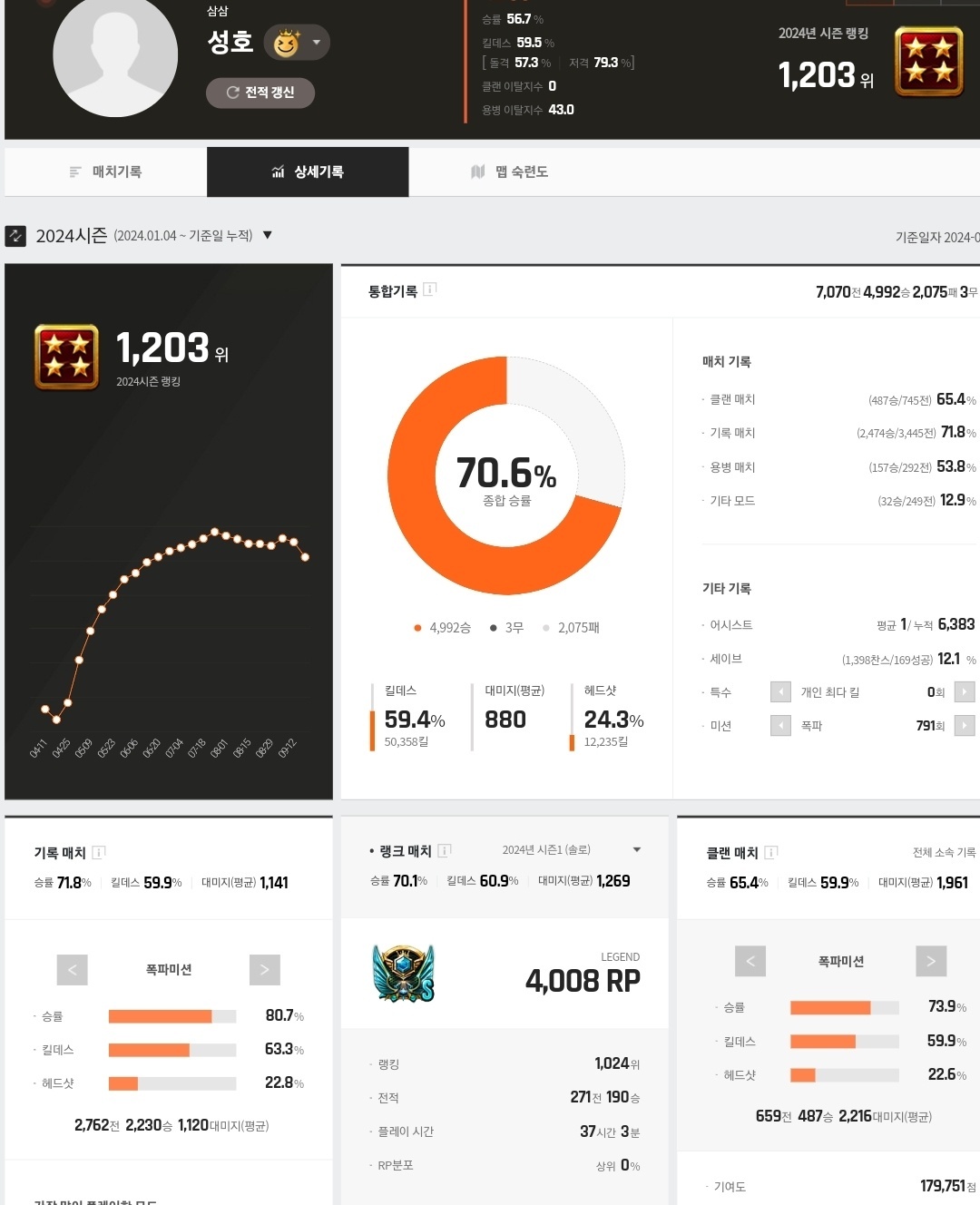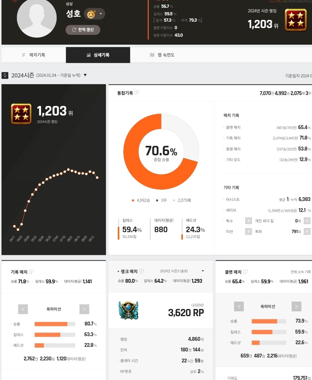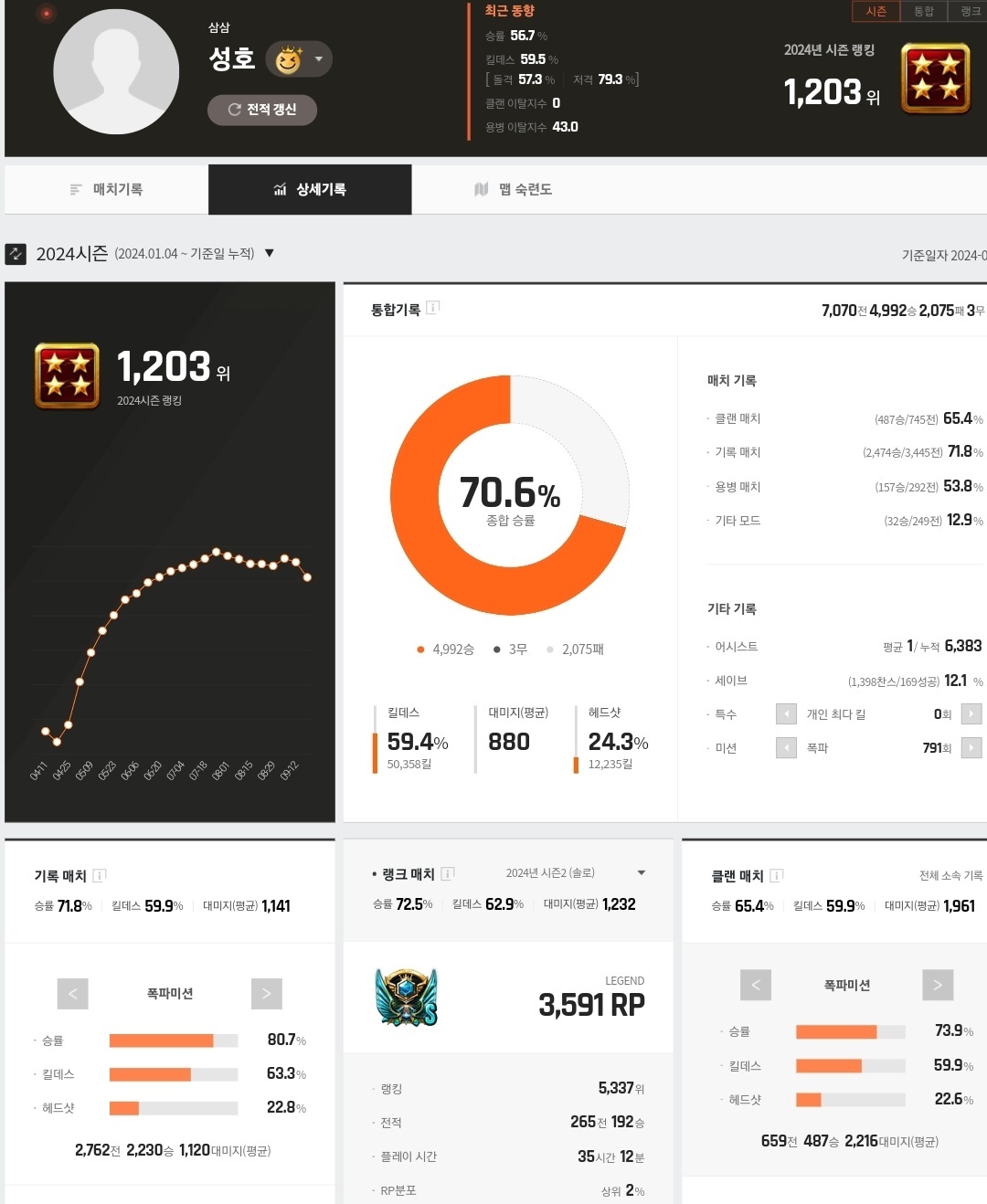 500판이상 그마~레전드초입 승률50대 킬댓 48~50초중반쏘던애가