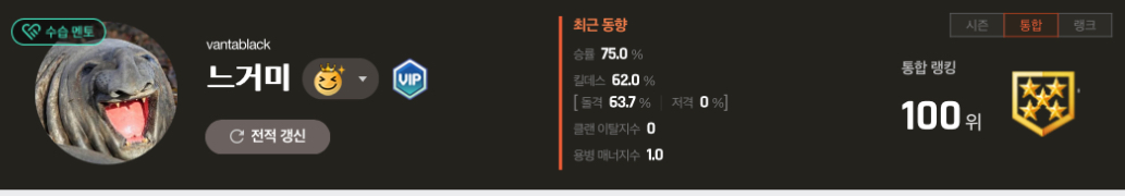100등 지립니다 형님 파랭 별레전드에 ㄷㄷ 개간지