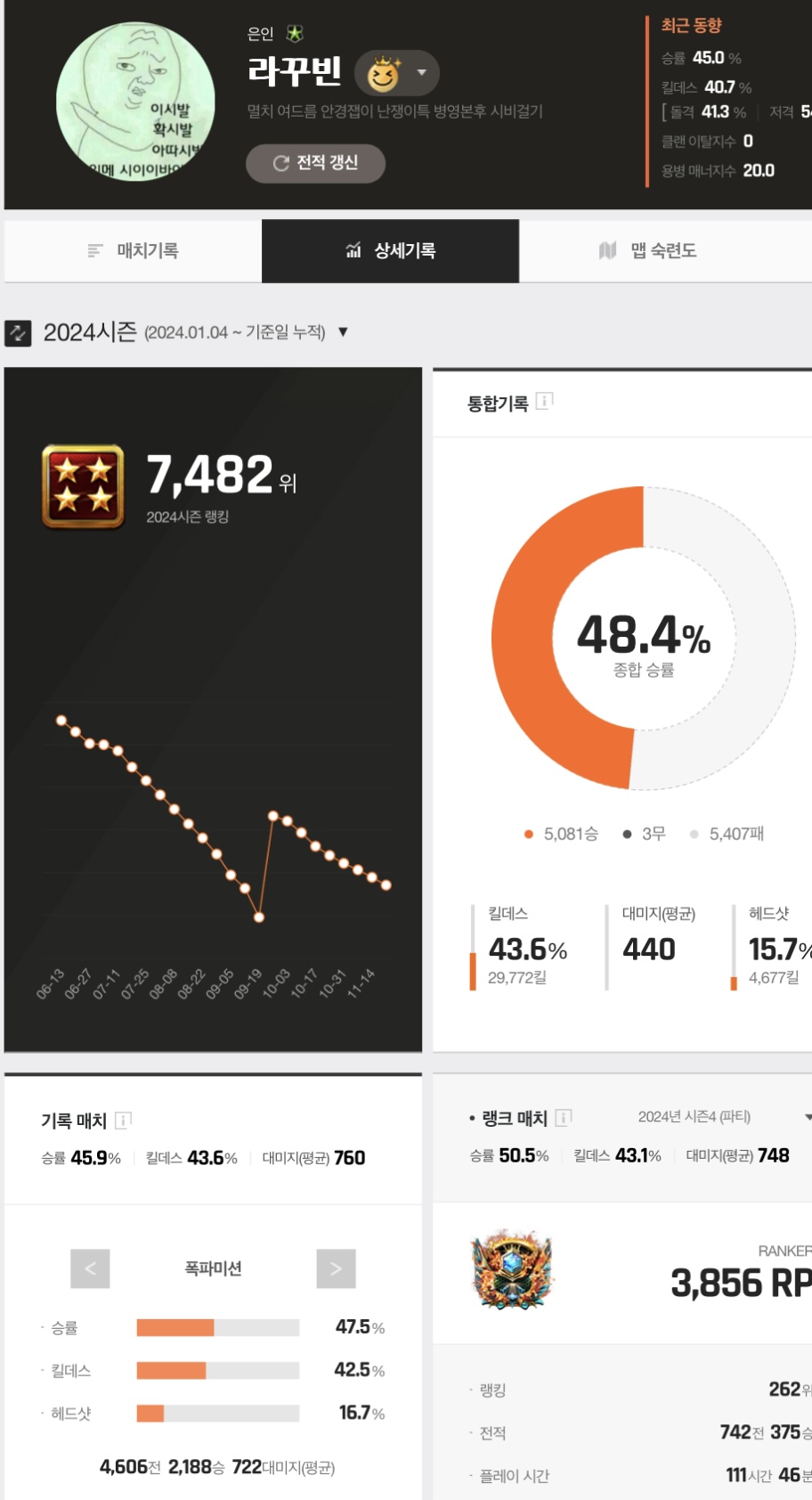 저 병영 프로필 소개글이 ㄹㅇ짜침ㅋㅋㅋㅋㅋㅋㅋㅋ줫벌레년이네 700전에 43퍼는ㅋㅋㅋㅋ걍 버스충