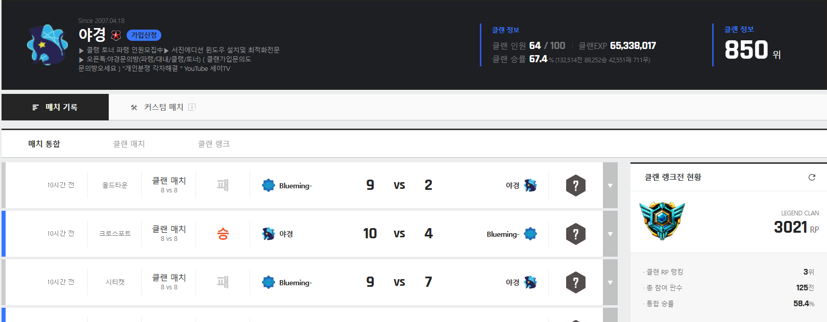어쩐지 애들은 존나못하는데 클랭점수 높더라 ㅋㅋ