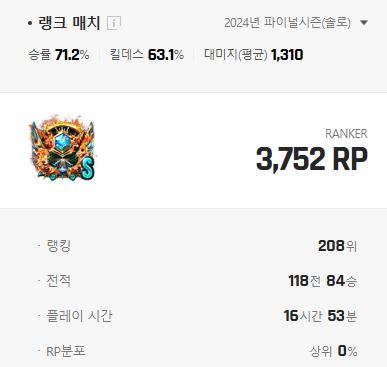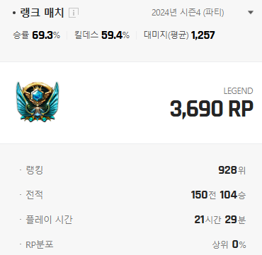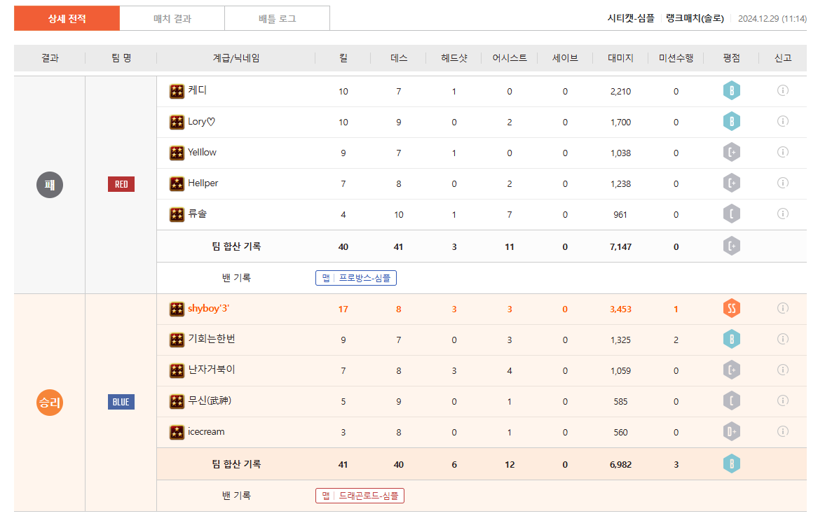 2부 따리가 랭크전 로리도 탈탈 털어버림 ( 스샷참조 )
