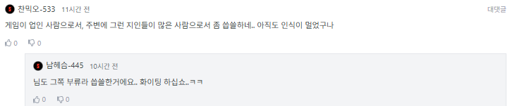 퍼보캅-959  : 전 서든도 잘 안하고 타겜프로 했었구요 지금은 게임쪽 관련업을 하고 있을뿐이에요. 전 겜에서 사람들 많이 만날 수 밖에 없는 직업인지라 아직도 인식개선 안된게 씁쓸하다 한거구요. 랜선연애 해본적도 없습니다. 살면서 연애 긴 텀 없이 쉬지않고 건강하게 잘 해욌구요,  광역시에서 학교 다 나왔고 인간관계도 좋아요. 일진놀이 대장놀이 하며 놀았다는게 아니라 교우관계 좋았어서 저희 또래애들끼린 서로 이름 말하면 알정도로는 인간관계 좋았고 성인 돼서도 연락 잘하고 경조사 잘 챙기며 살아왔어요ㅋㅋ. 적어도 익명속에 숨어서 이러시는분보단 유복하게 잘 살고 있습니다. 전 항상 댓글 달때마다 날 세워서 얘기하면 서로 연락처 교환하고 인증 해준다고 하거든요? 님들도 그래보실래요?