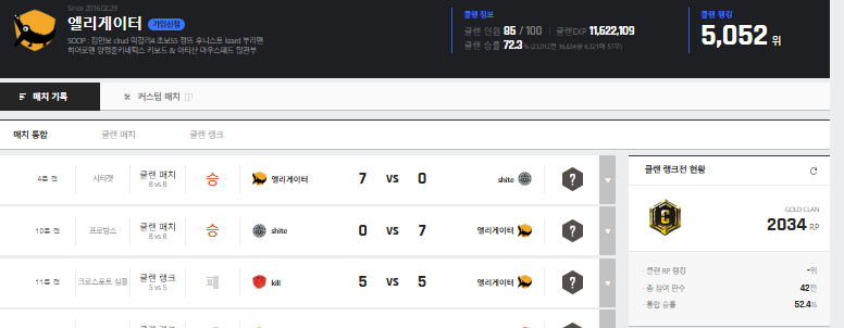 이거 클랭배치 50판을 다봐가는데 승률이 왜52퍼임? 클랜원 절반이 여잔가?