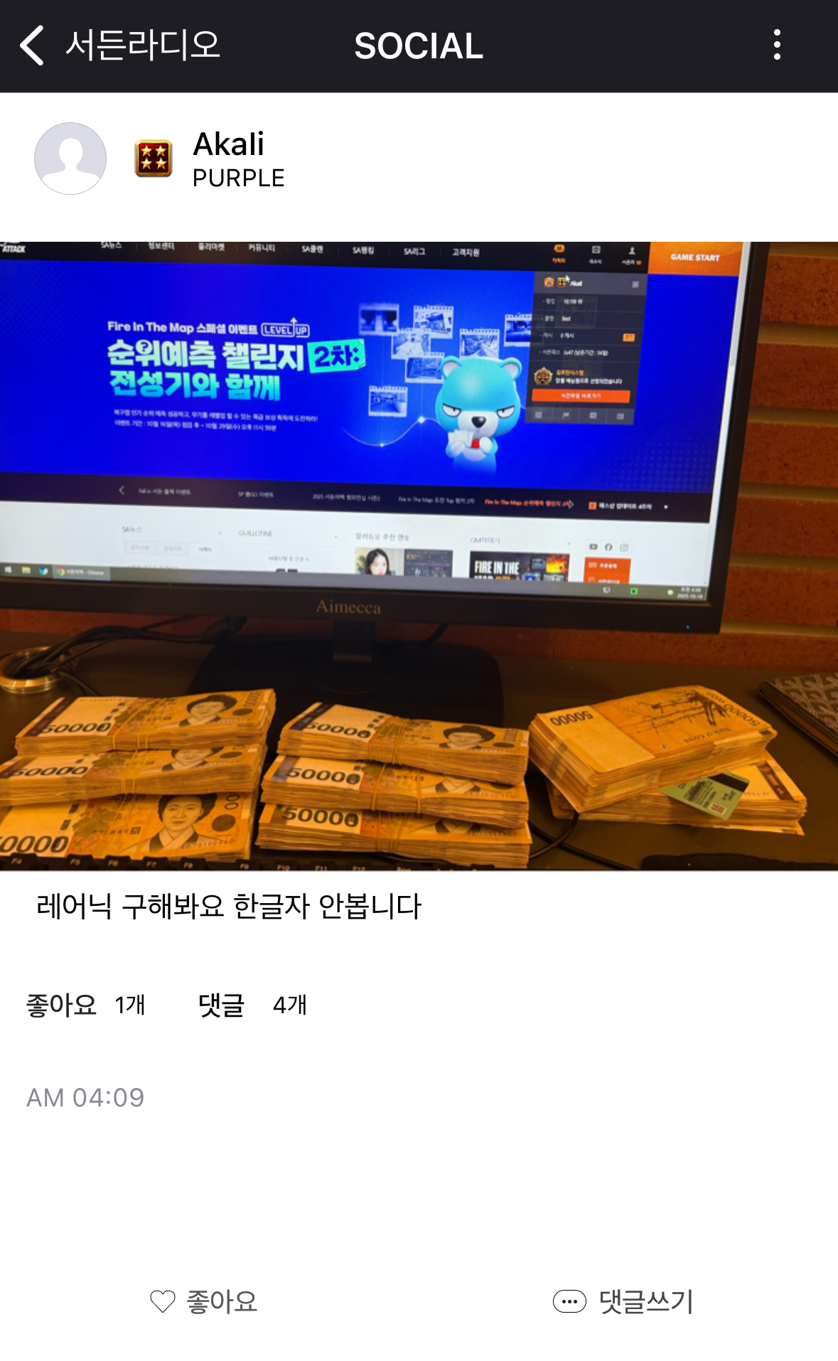 이렇게 돈꺼내놓고 과시하는애들 100이면100 불법토토하는애들이던데 무슨심리로 글올리는지 아시는분?