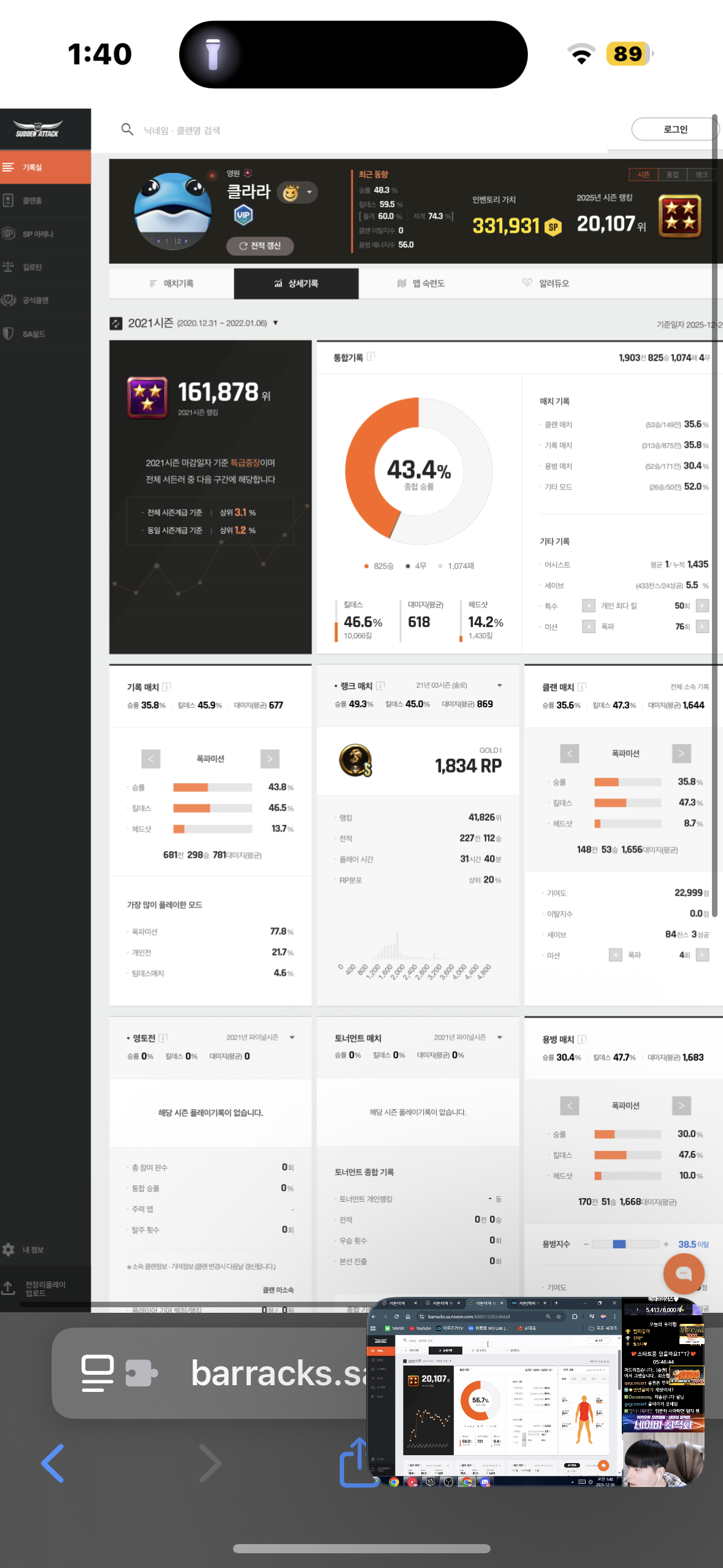 지금은 별레구간 59퍼 쏘는데 과거에는 골드 현지인이었네 그것도 8시즌이상이나 ㅋㅋ