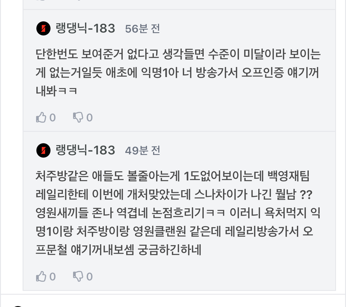 (다른애들은 다 오프하는데 정작 자기는 오프안하고 남평가만 조땜)