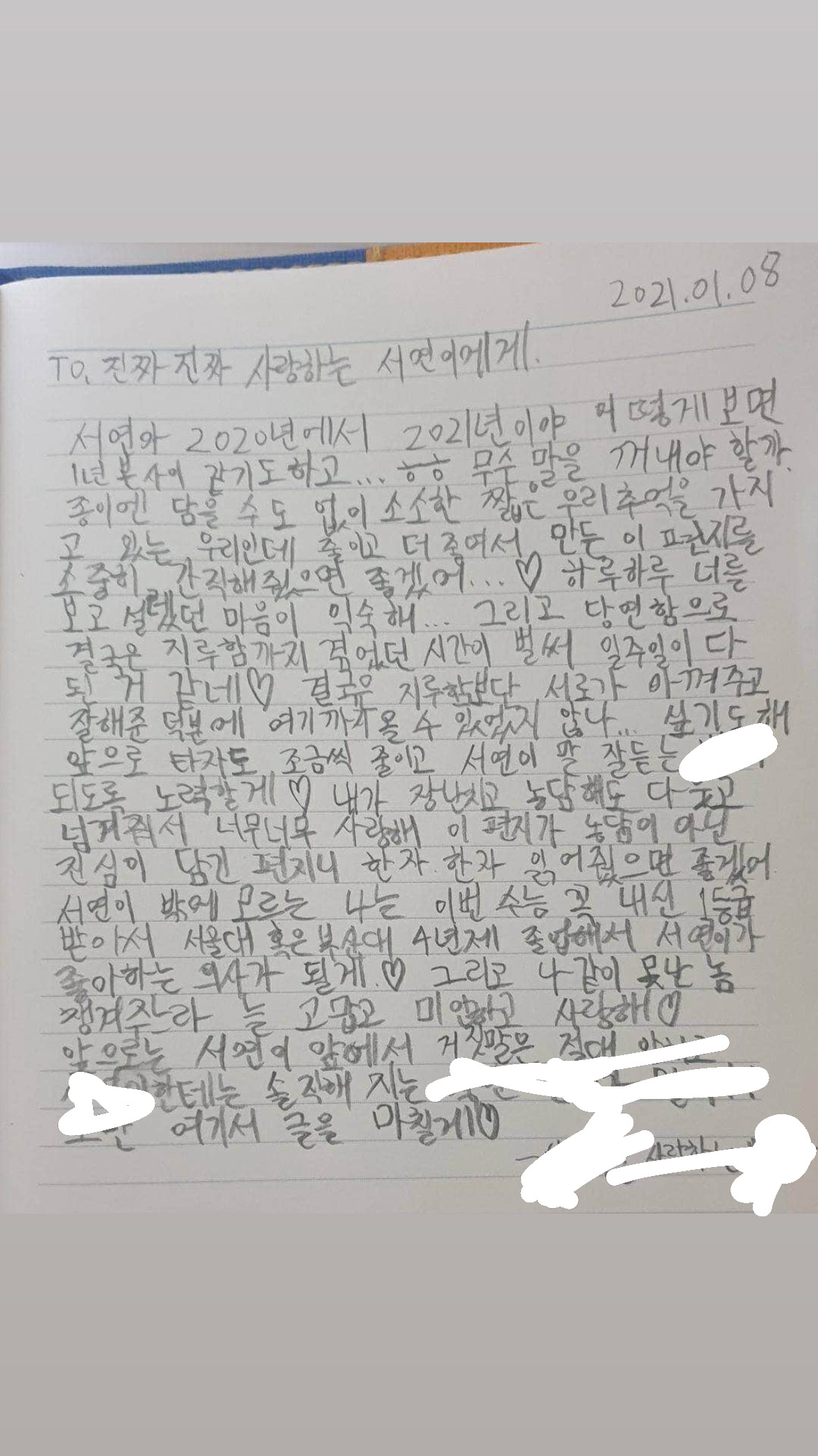 시영이말고도 서연이도 있다 ㅋㅋ 하x스나가 손편지 21년도에 쓴거 뿌린다