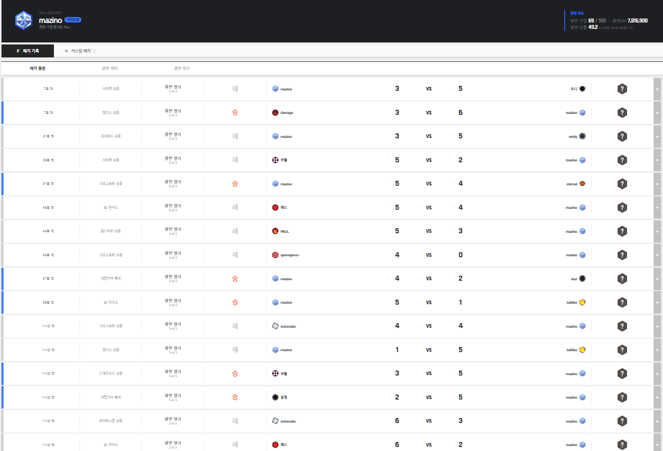 6승10패 ㅋㅋㅋㅋㅋㅋㅋㅋㅋ빨리 영원한테 마지노로 져주고 빨별만들어주자잉?? 어뷰 빨별클랜 ??