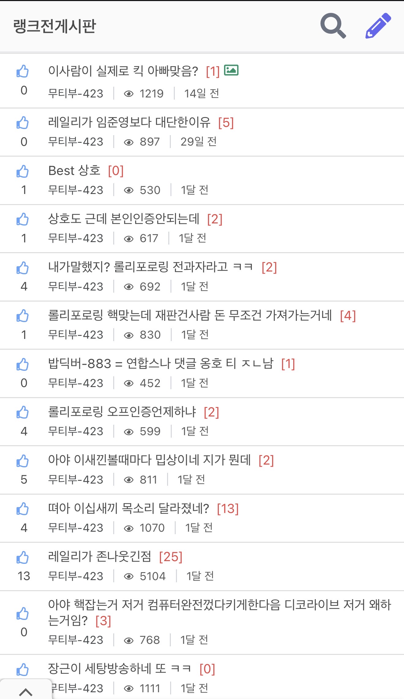 쟤 최근에도 레일리 방송가서 풍쏘고 정신차렸다고 안그러겠다고하는데 개새끼들은 원래 주인이 예쁘다예쁘다하면 하루민 처럼 저렇게 들짐승이 주인찾은 사냥개가 되는법임 넌 그냥 쟤랑 같은 부류인거고