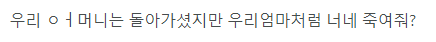 우리 ㅇㅓ머니는 돌아가셨지만 우리엄마처럼 너네 죽여줘?
