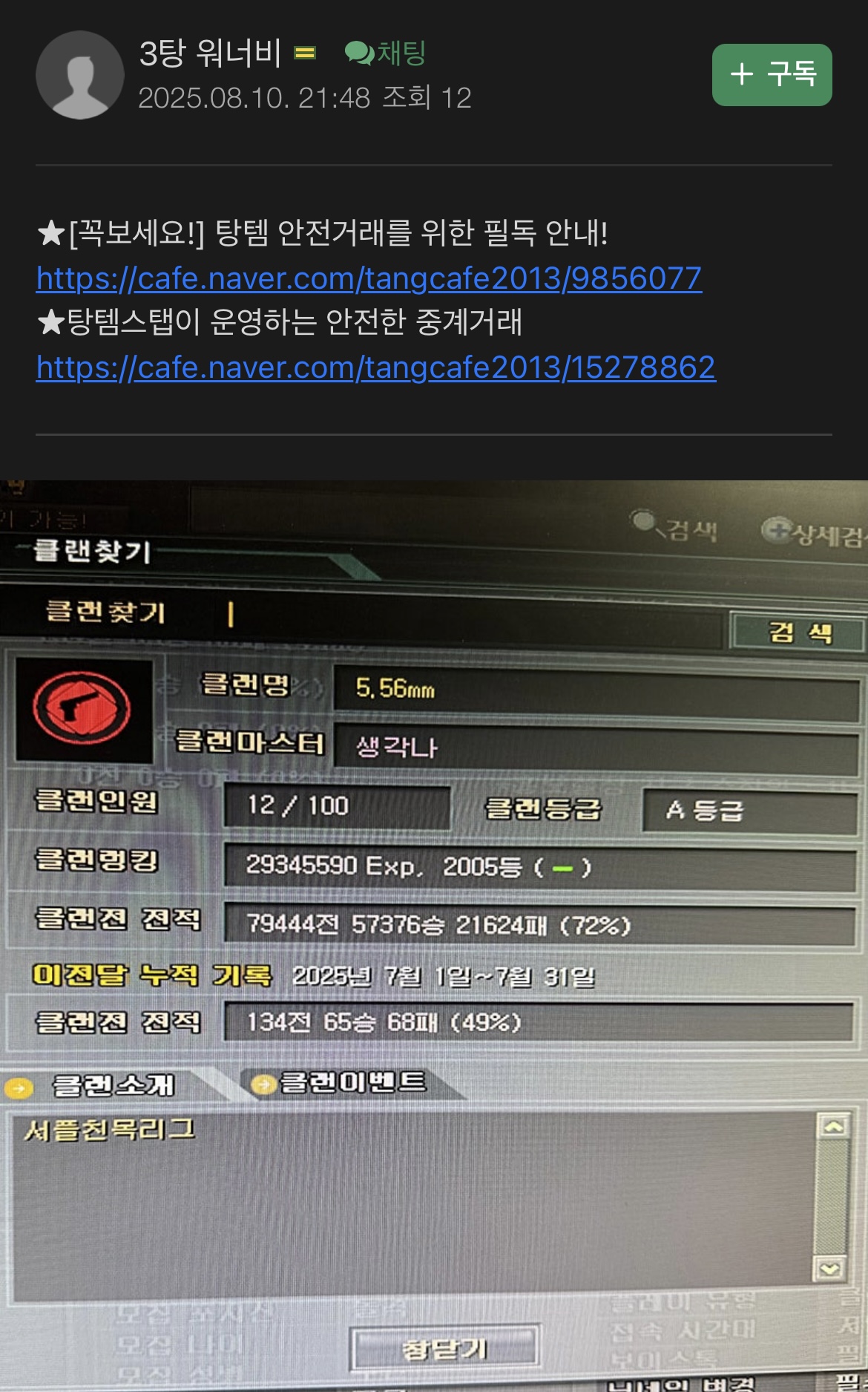 클랜 올린지 몇일 안된거같은데 등록시키고 바로 팔아버리네 ㅋㅋㅋㅋㅋㅋㅋㅋㅋㅋㅋㅋㅋㅋㅋㅋㅋㅋ