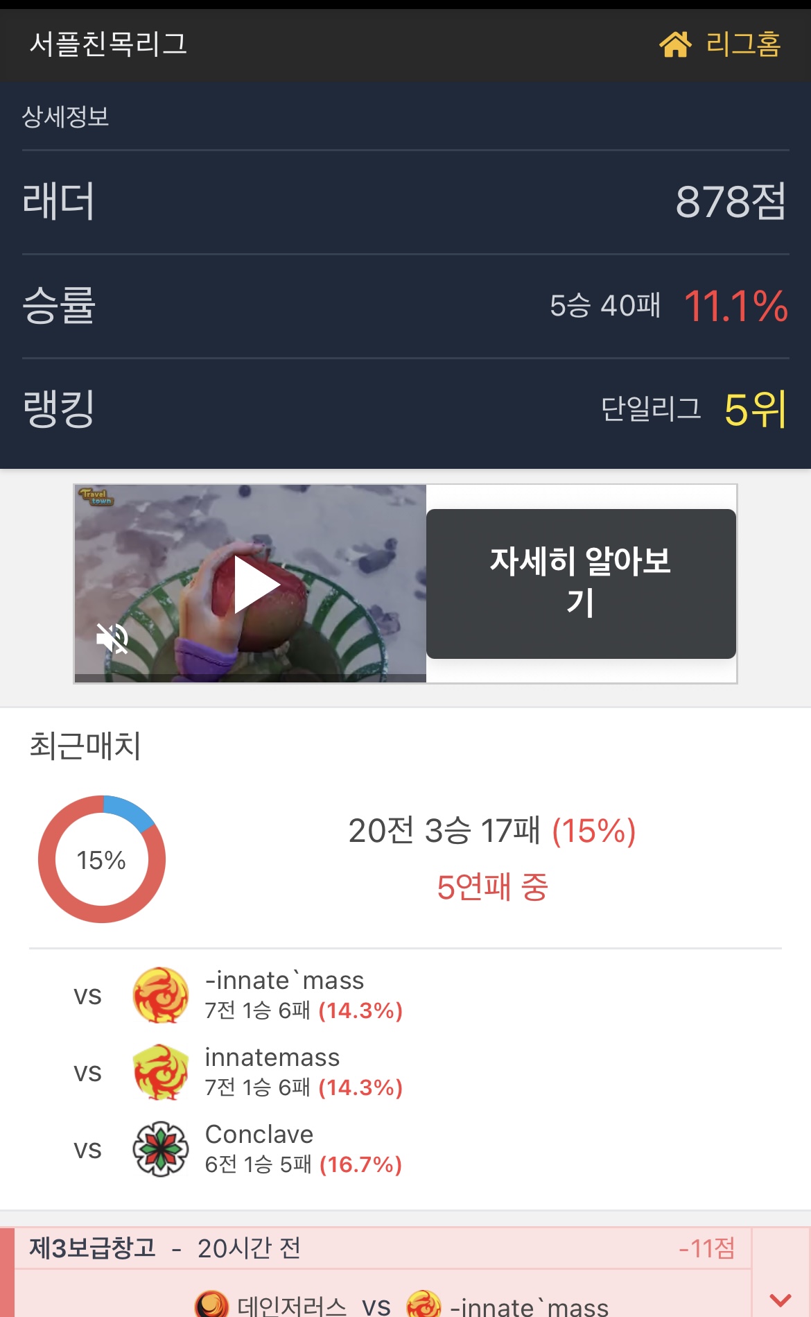 승률11퍼인데... 클랜래더 5위 ㅋㅋㅋㅋㅋㅋㅋㅋㅋㅋㅋㅋㅋㅋㅋㅋㅋㅋㅋㅋㅋㅋㅋㅋㅋㅋㅋㅋㅋㅋ
