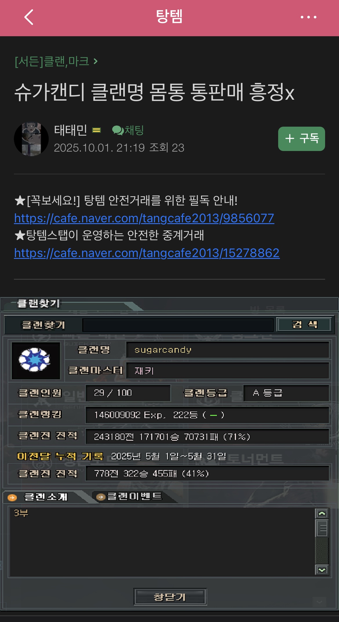 잘하자나?ㅋㅋㅋㅋ 3부클랜 파는곳 많더라