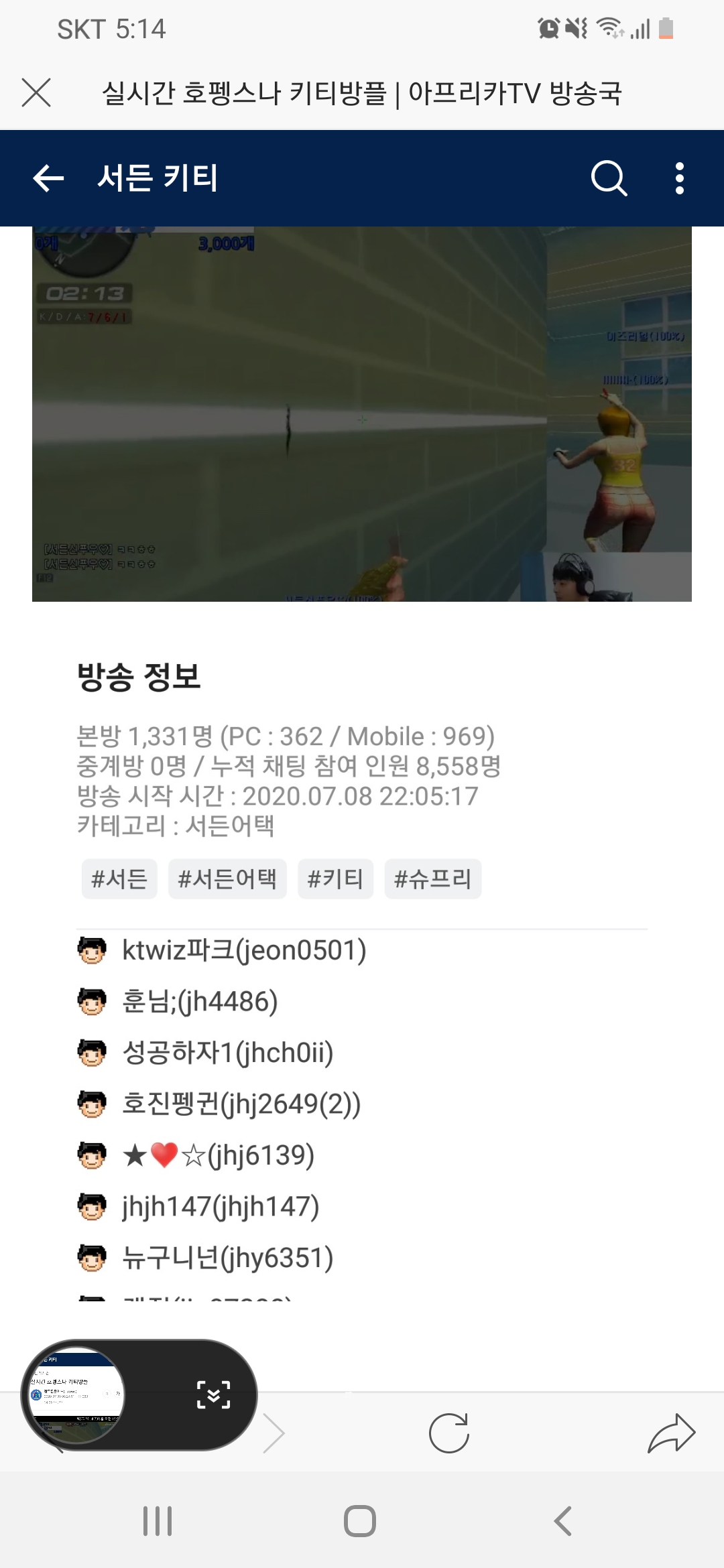 현 시각으로 서든2층 1위 변경합니다