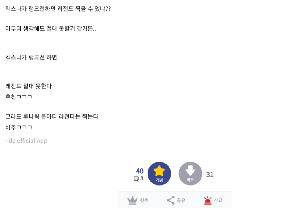 저런글쓰는애들이 레전드 찍엇다고 즈그들이 랭커인줄 안다 ..