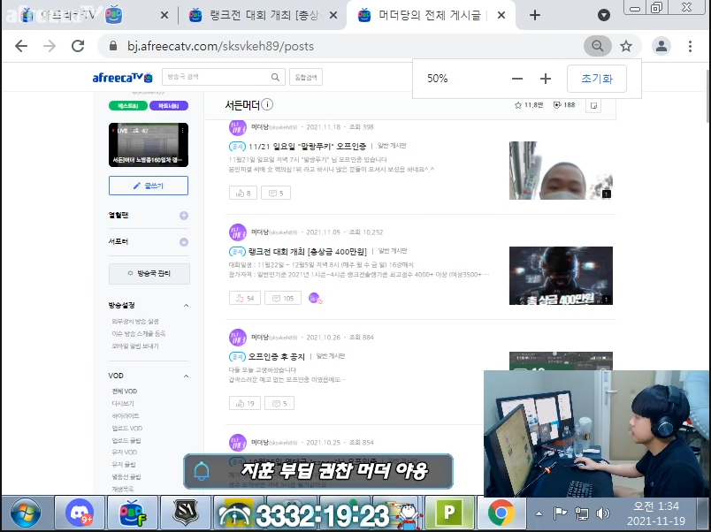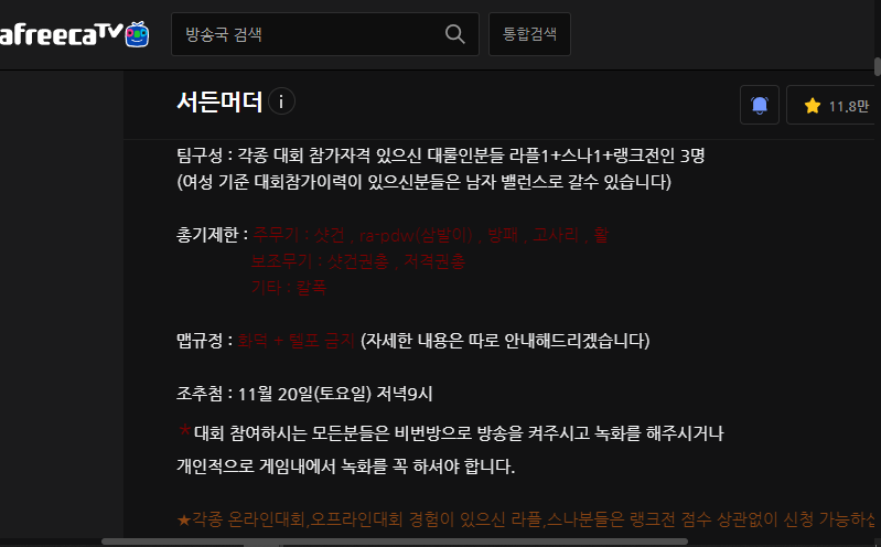 그리고 계속 머X의 다시보기를 본 결과  "11/21 랭크전대회 조추첨" 이라는 게시글은 "2021-11-21" 에 올린 게시글임.