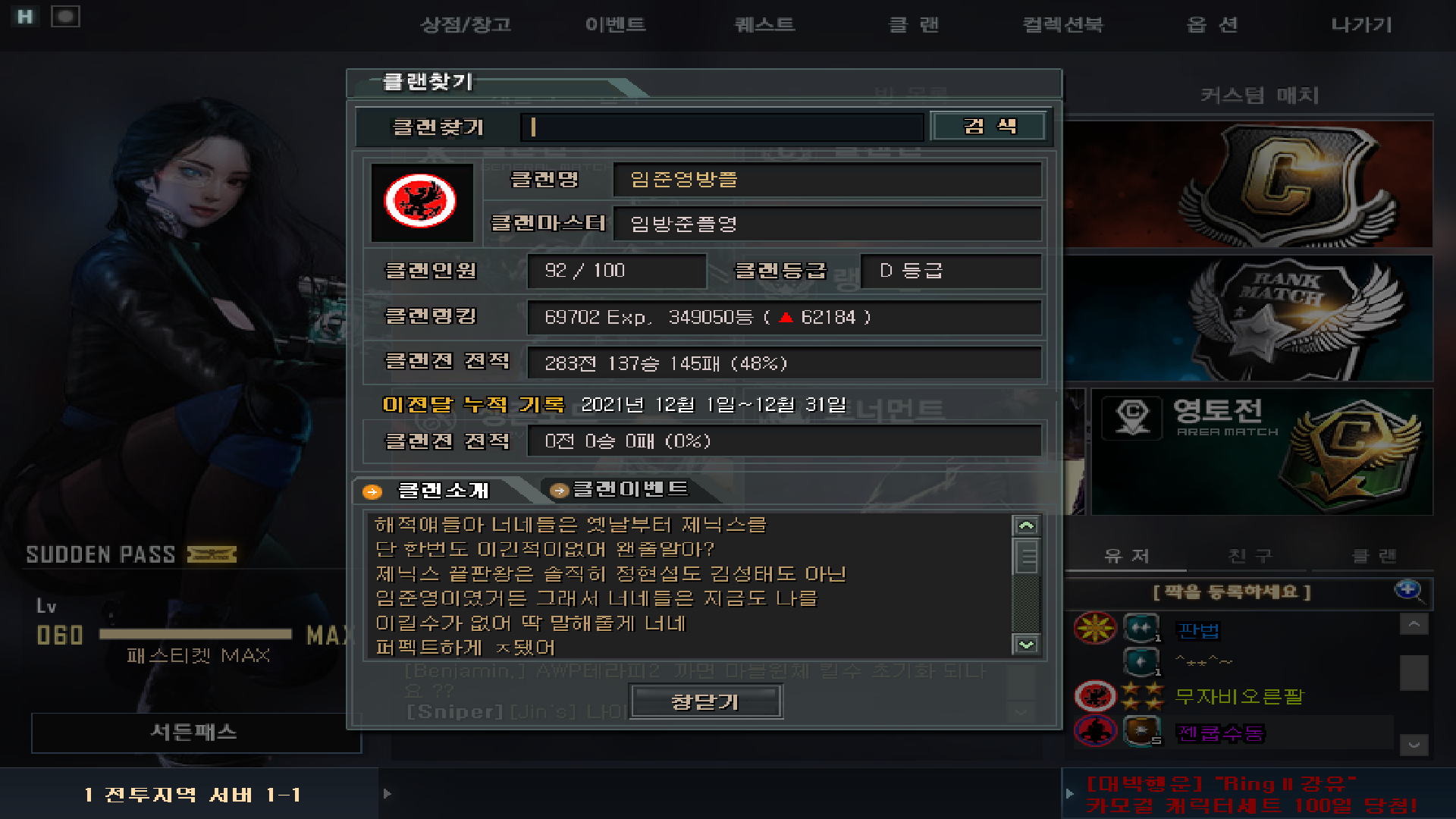 ㅋㅋㅋㅈㄴ골떄리네 뭔데 클랜원은 92명씩이나있노