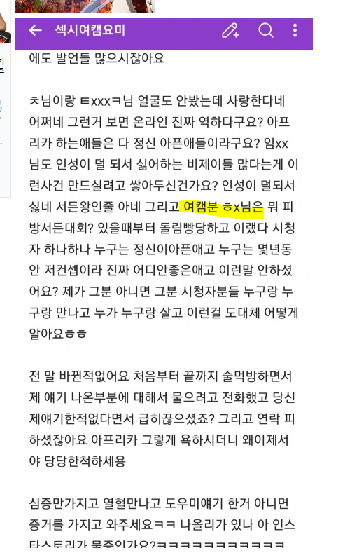 우연히 구글링 하다가 ㅇㅌ 전여친이 폭로글 본건데..누구임? 이런것도 물어보면 문제되나?