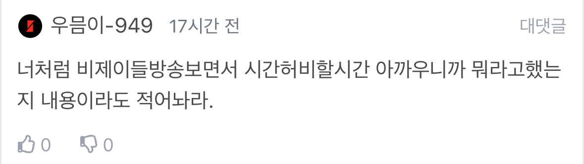 해팡칠아 내용을 안보니가 너네처럼 방송쩌들어사는애들한테 물어보는거잖아 ㅋㅋ 맥락을이해못했냐