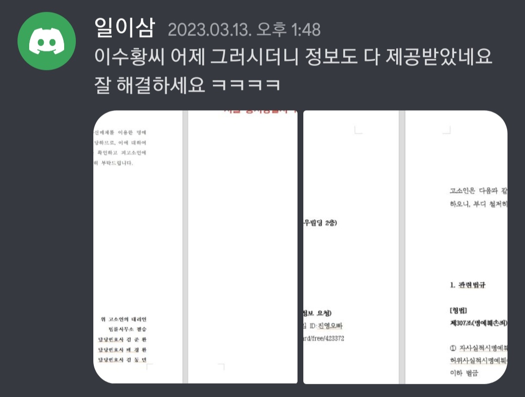 다 필요없고 서플에서 글은 절대 뒤져도 모가지에 칼이들어와도 고소진행이안됨 ㄹㅇ팩트임ㅋㅋ 해보셈