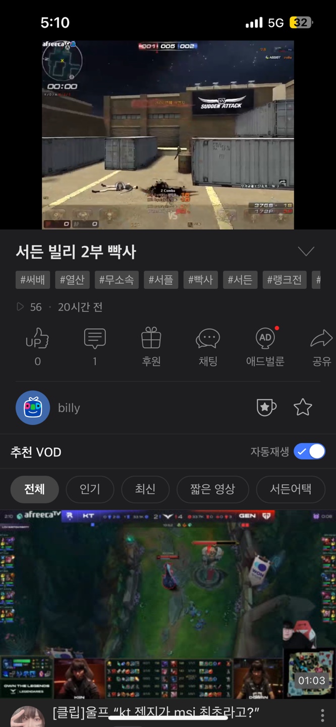 이야기 하던 중 서든 유저분이 서플에 빌리 영상 감거