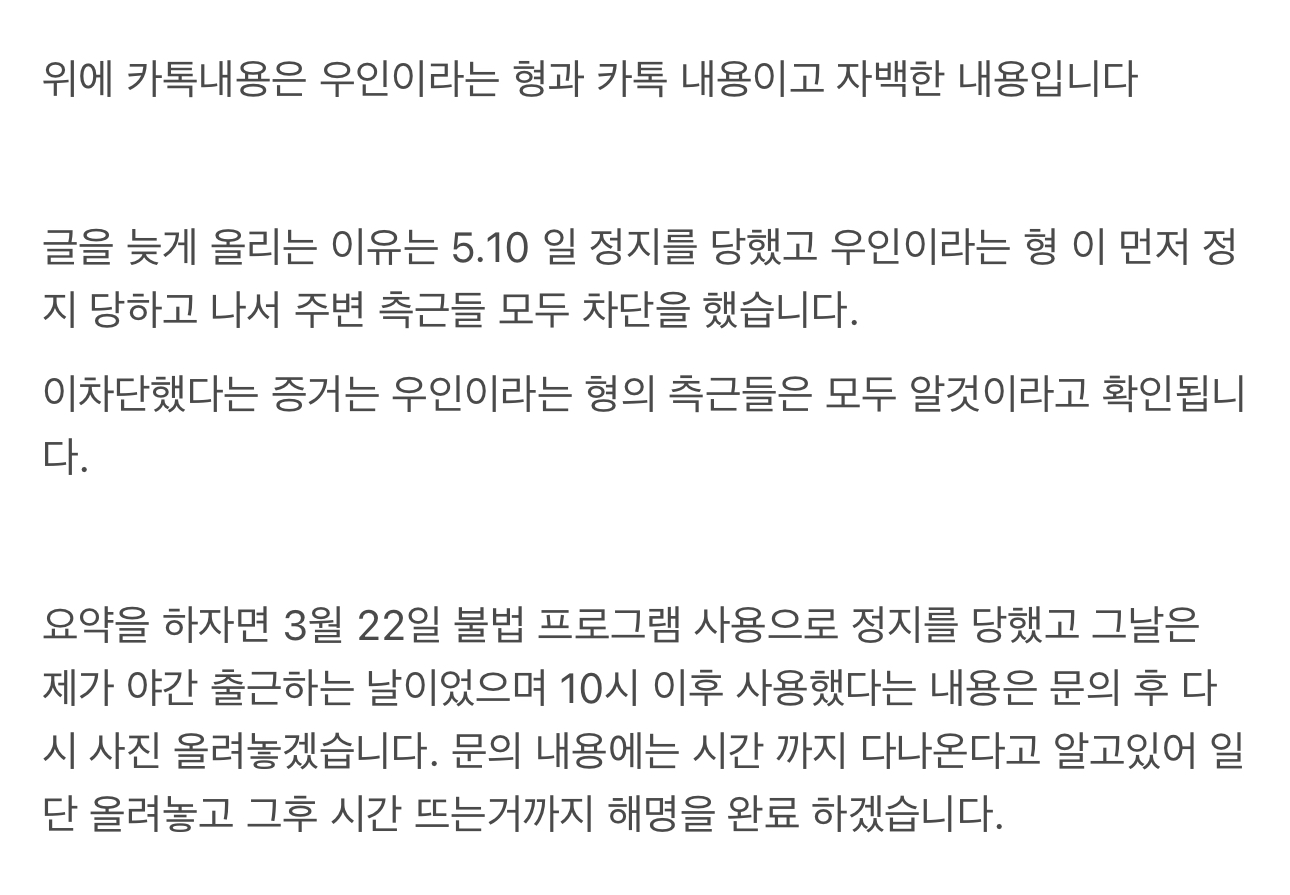 그 님이 스스로 해명 올리신다고 글 작성하셨잖아요