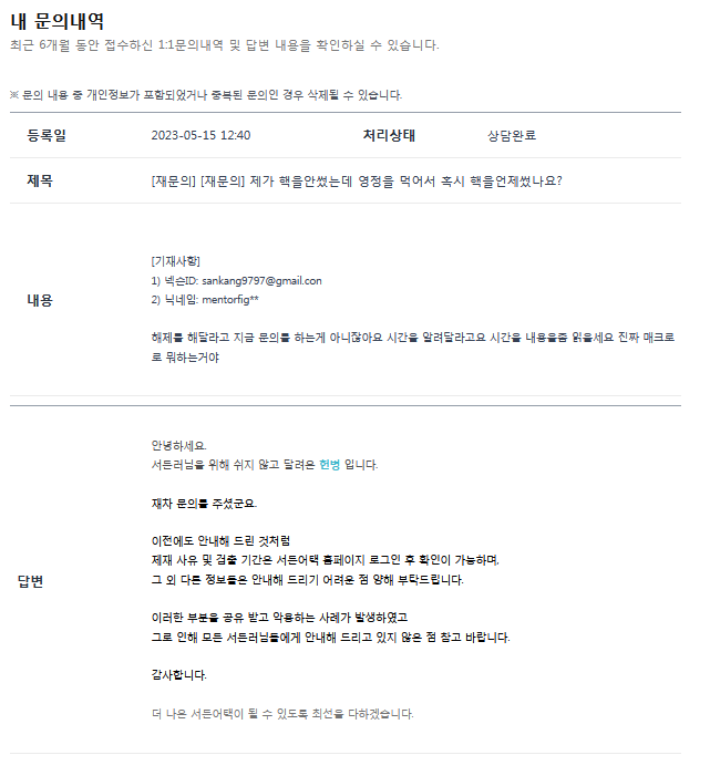 시간 답변온거 보여주세요