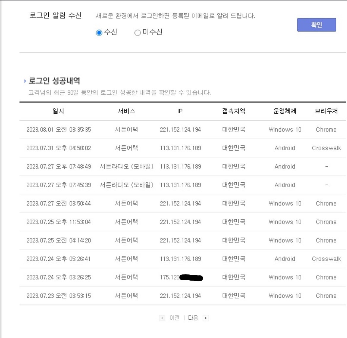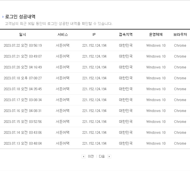 + 해운대에서 가게를 운영하고 있고 오후18시오픈 오전3시마감이며 매주 화요일 휴무하고있습니다. 그래서 휴무인날은 약속이없으면 이른시간 접속한기록이 있고 그 외에날에는 오전3시이후 접속한 기록들이 있습니다. 하나 다른아이피는 홍우것이구요.