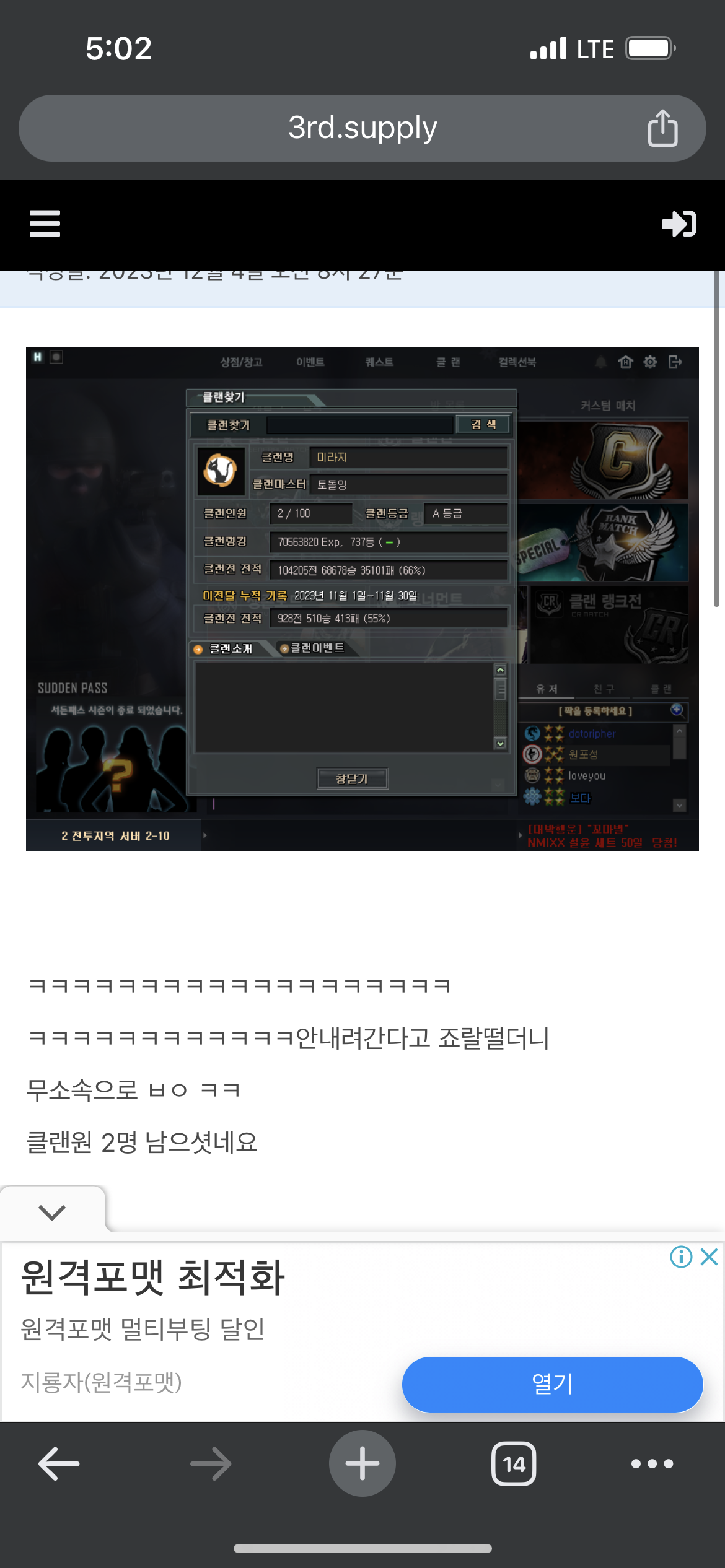 ㅋㅋㅋㅋ명문빡사클랜 단어선택이 왜케 웃기냐