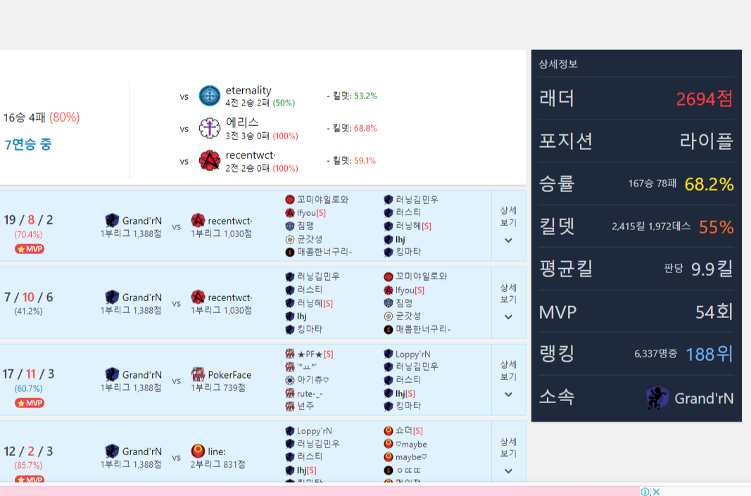 핵쟁이니까가능한 전적ㅋㅋㅋㅋ
