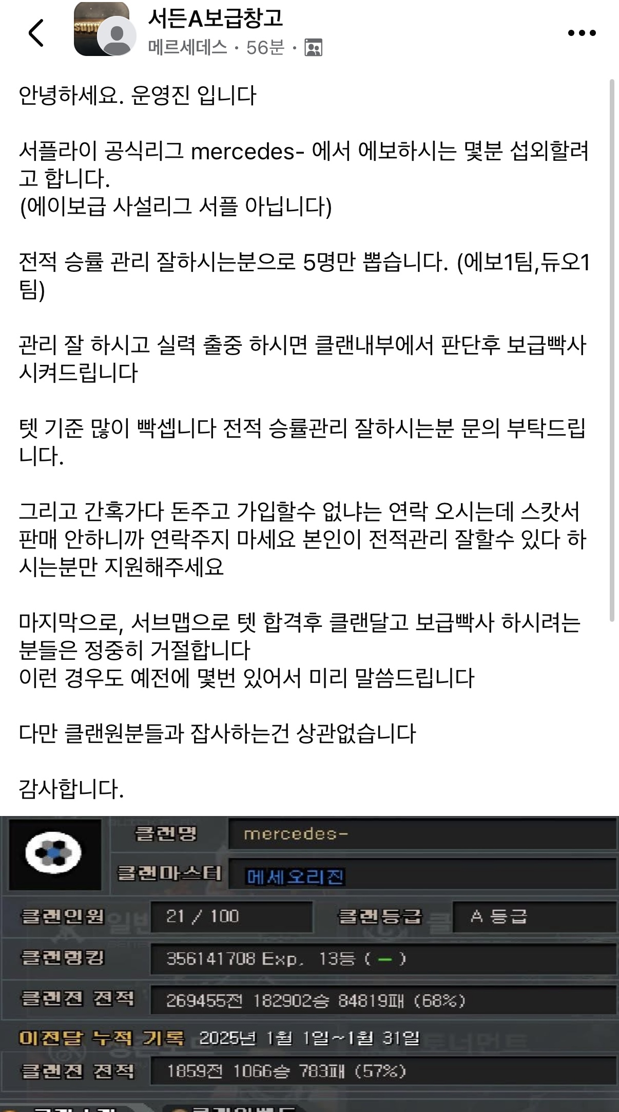메르세데스 저기 어제 친구들이랑 술먹고 오랜만에 3보해서 만났는데 개못하더라 유명한 클랜이었구나 4050 클랜인줄