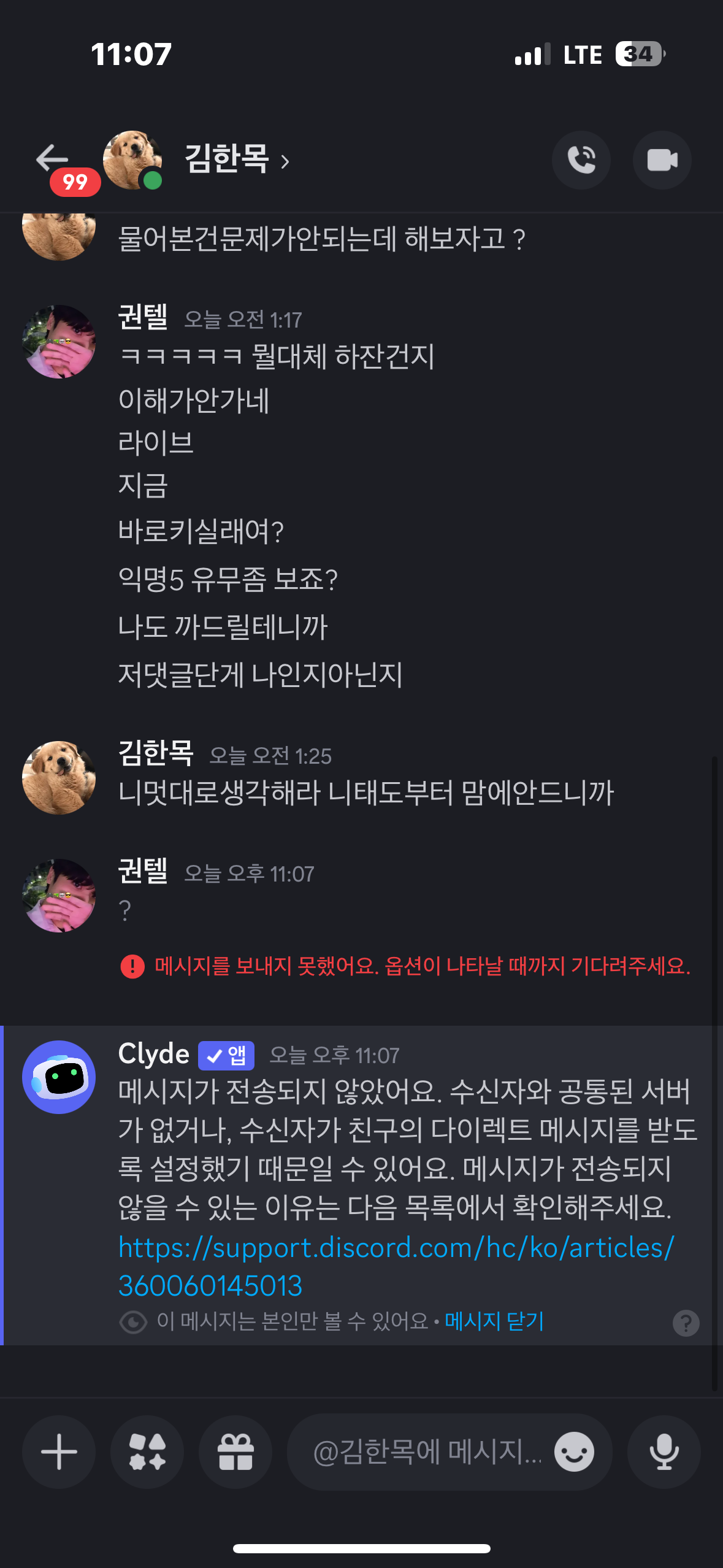 알려고 디엠을 했더니, 차단하고 동일 디코 추방시켜서 도망쳤습니다 전 인증 다 해드린다니까 망상증이 계신가봐요