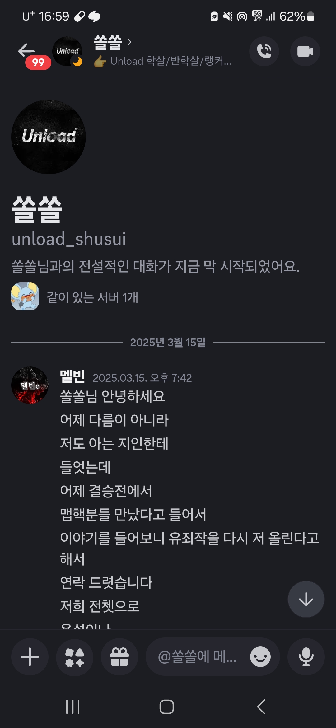 제가 언로드 총책이랑 텔레를 했다? 개 같은소리구요 일토에서 무슨일이 있어 제가 갠디를 했던 부분은 사실이고 그때 혹시나 뭔일 있을까봐