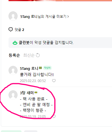 탕템  댓글 막아버리는 형준